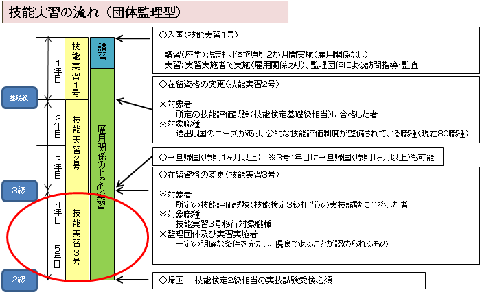 The Foreign Technical Intern Training Program was established in 2015 under the “Act on the Appropriate Implementation of Technical Intern Training for Foreign Nationals and Protection of Technical Intern Trainees Foreign Technical Intern Training Program (Technical Intern Training Act). This act was submitted to the National Diet in 2015, enacted on November 28, 2016, and came into effect on November 1, 2017. Under this law, in addition to the existing Technical Intern Training (Level 1 and Level 2), excellent implementing organizations and supervising entities are allowed to extend the training to Level 3, enabling trainees to continue their program for a fourth or fifth year.
